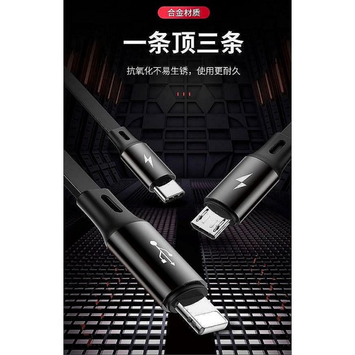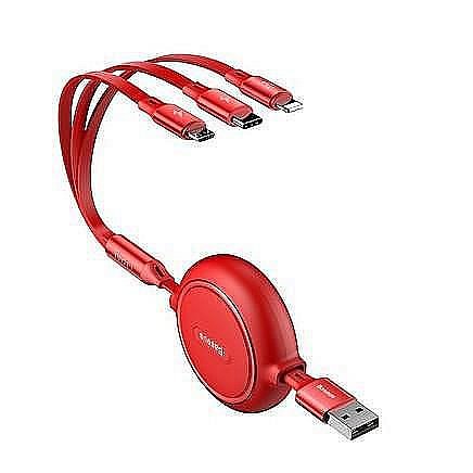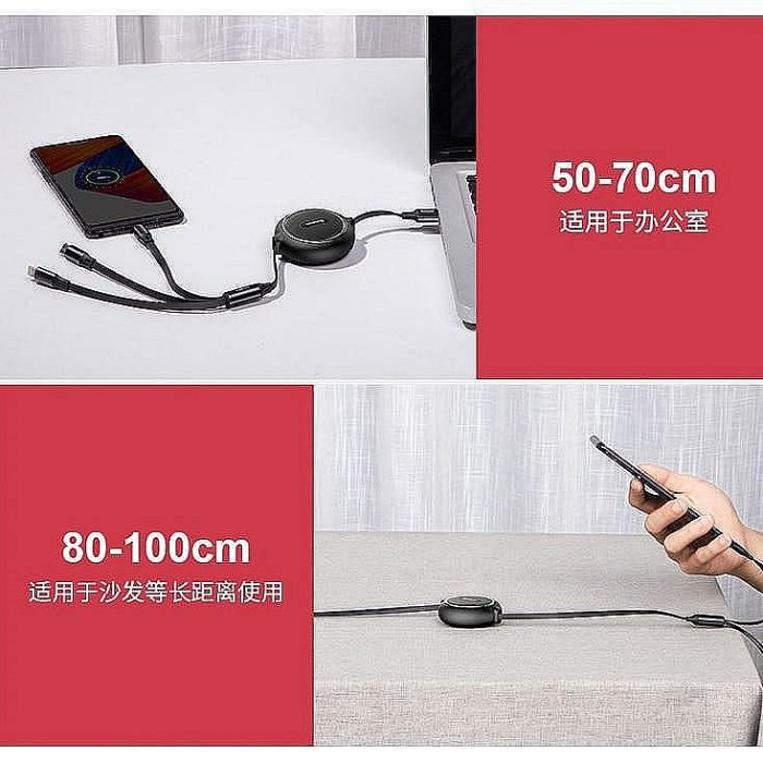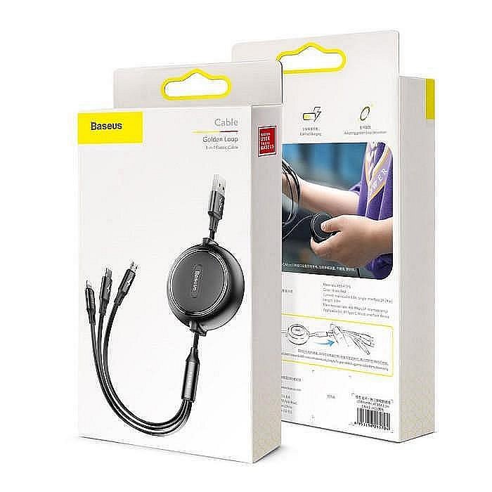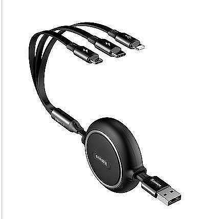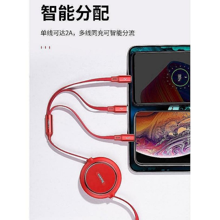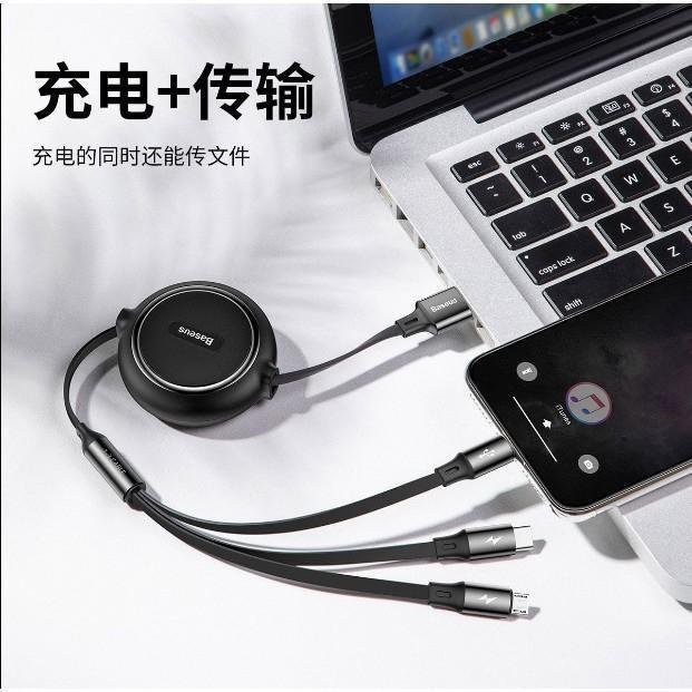 倍思 baseus 金環一拖三數據線 苹果+安卓+type-c 伸縮數據線 多功能線 蘋果安卓手機通用充電線 便攜數據線