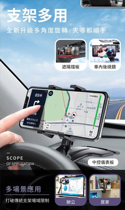 車用多功能支架 升級款 車用導航架 儀表板 遮陽板 後照鏡 手機架 車用手機架 汽車手機架 手機支架