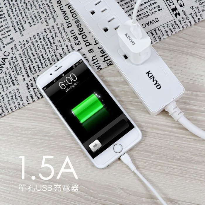 KINYO 耐嘉 大電流1.5A單孔USB充電器 1入 CUH-5305
