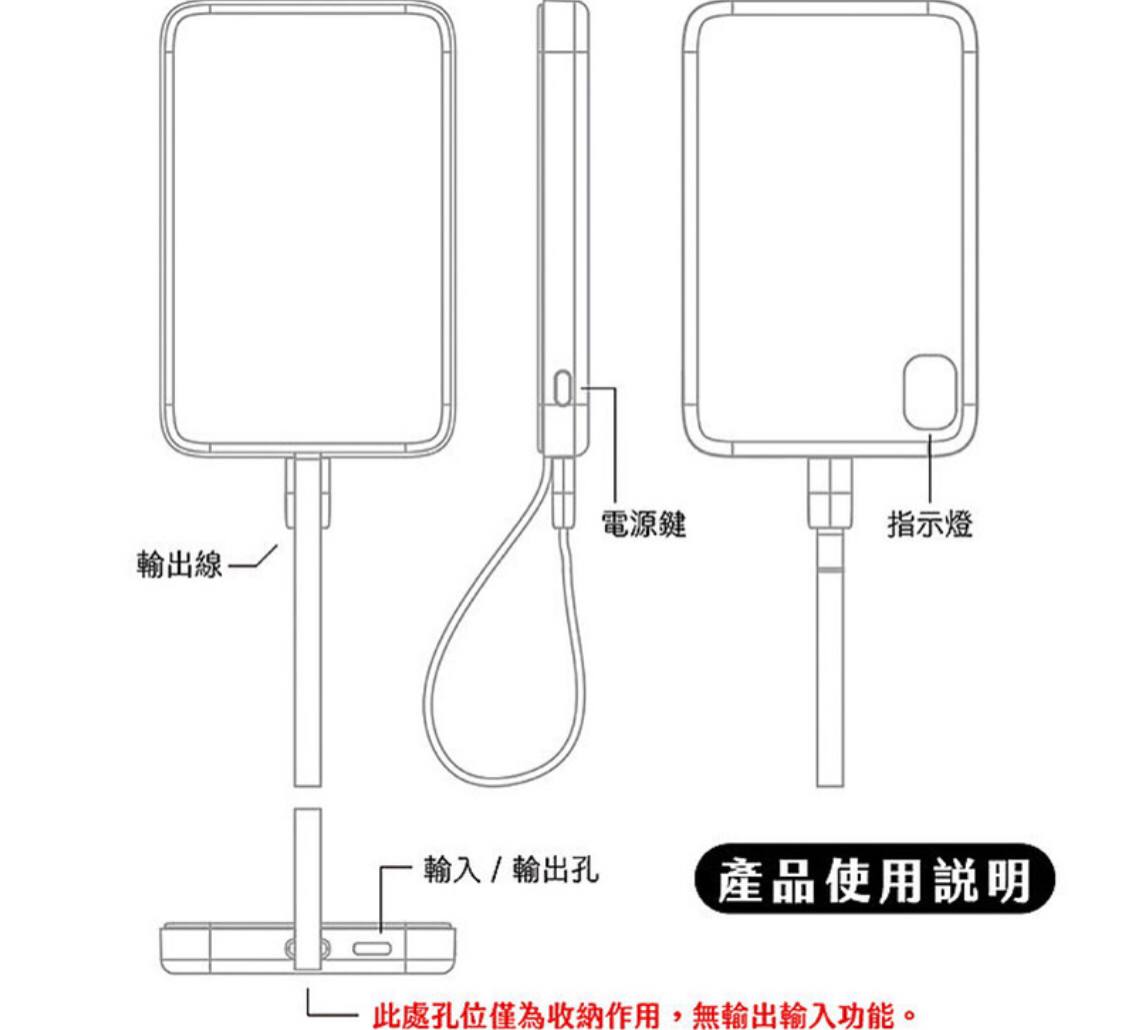 .輸出 :Type C 孔:5V⎓2.4A, Lightning線/Type-C線:5V⎓2.4A