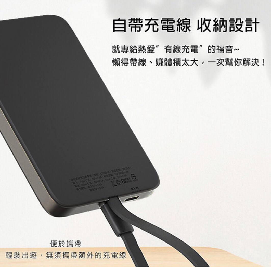 擁有 5000mAh 的強大電量,搭配自帶充電線,讓您無需攜帶多餘配件,隨時隨地輕鬆充電。